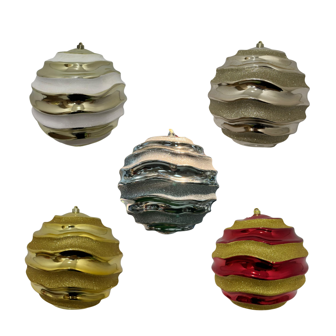 Esfera decorativa de 30 cm con un diseño ondulado que alterna entre acabados brillantes y texturizados.