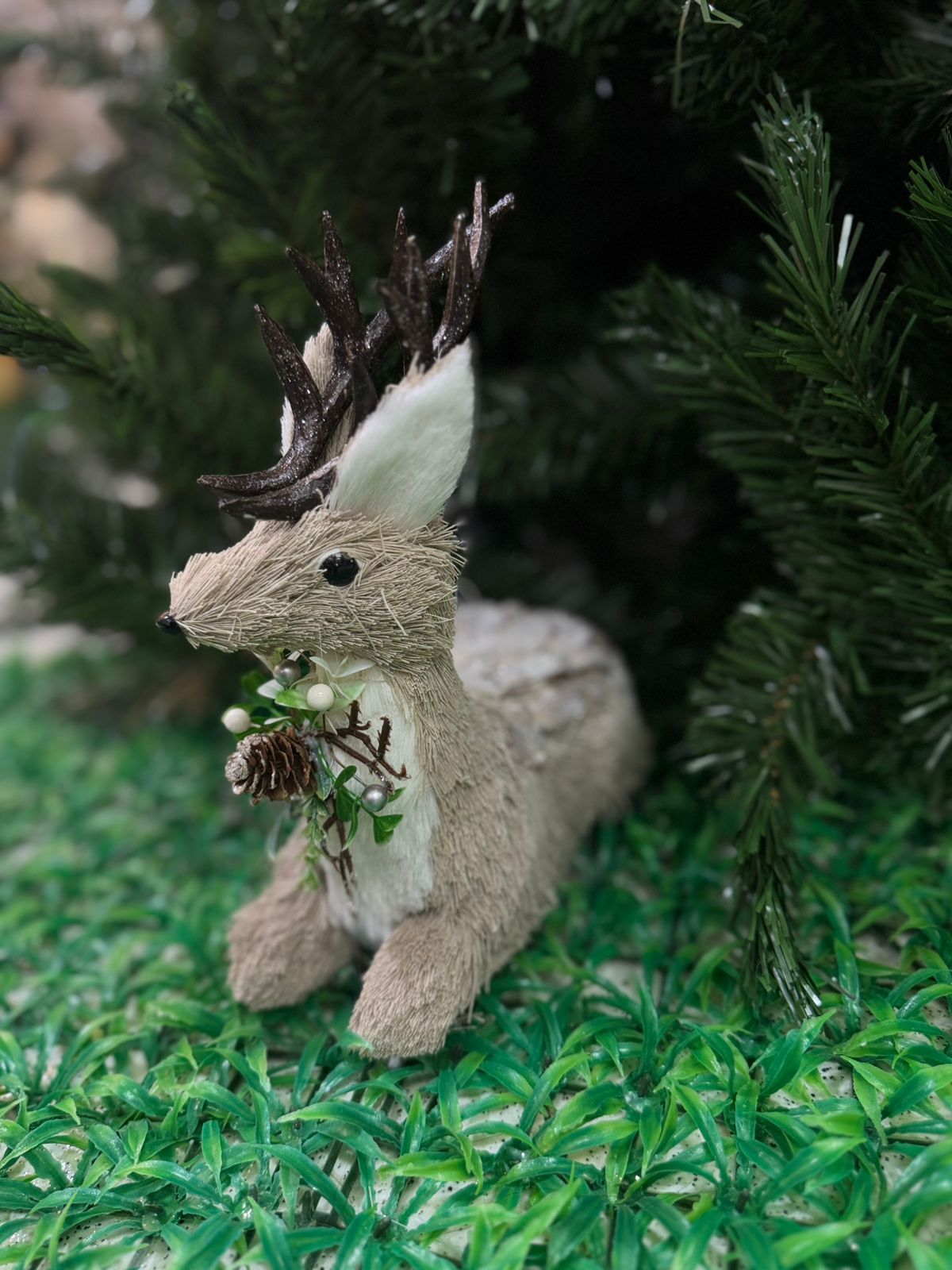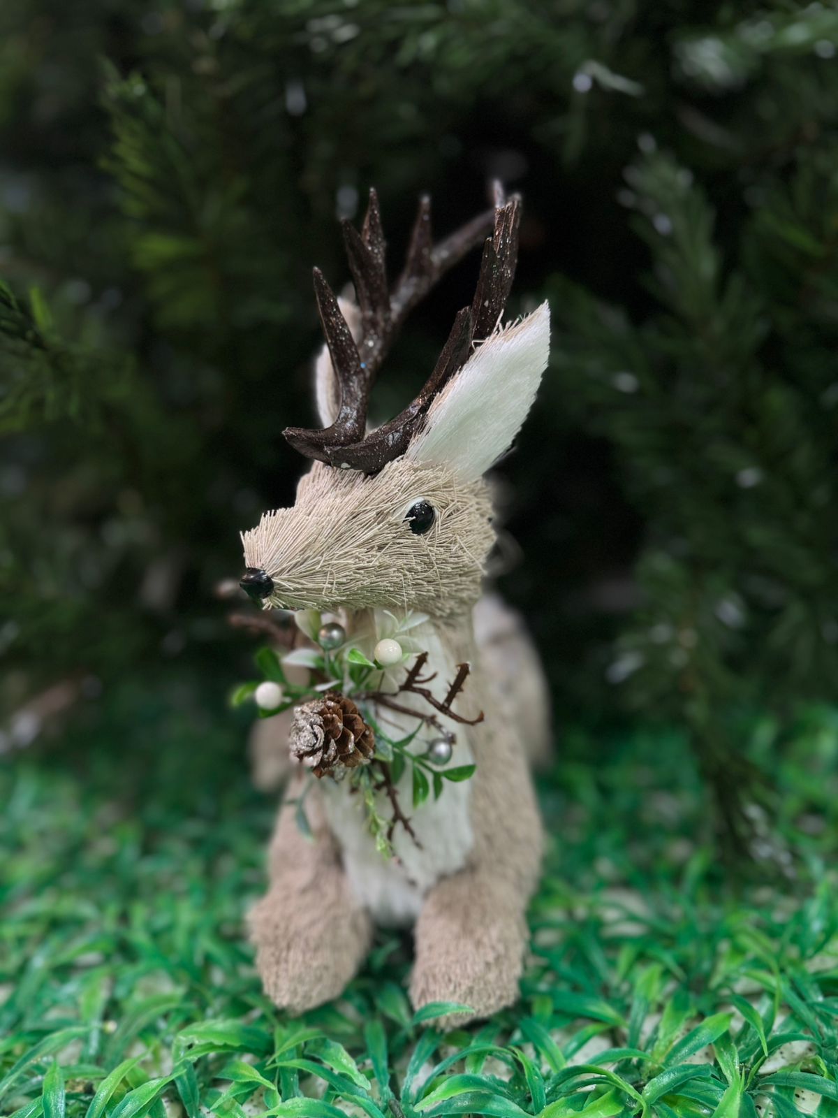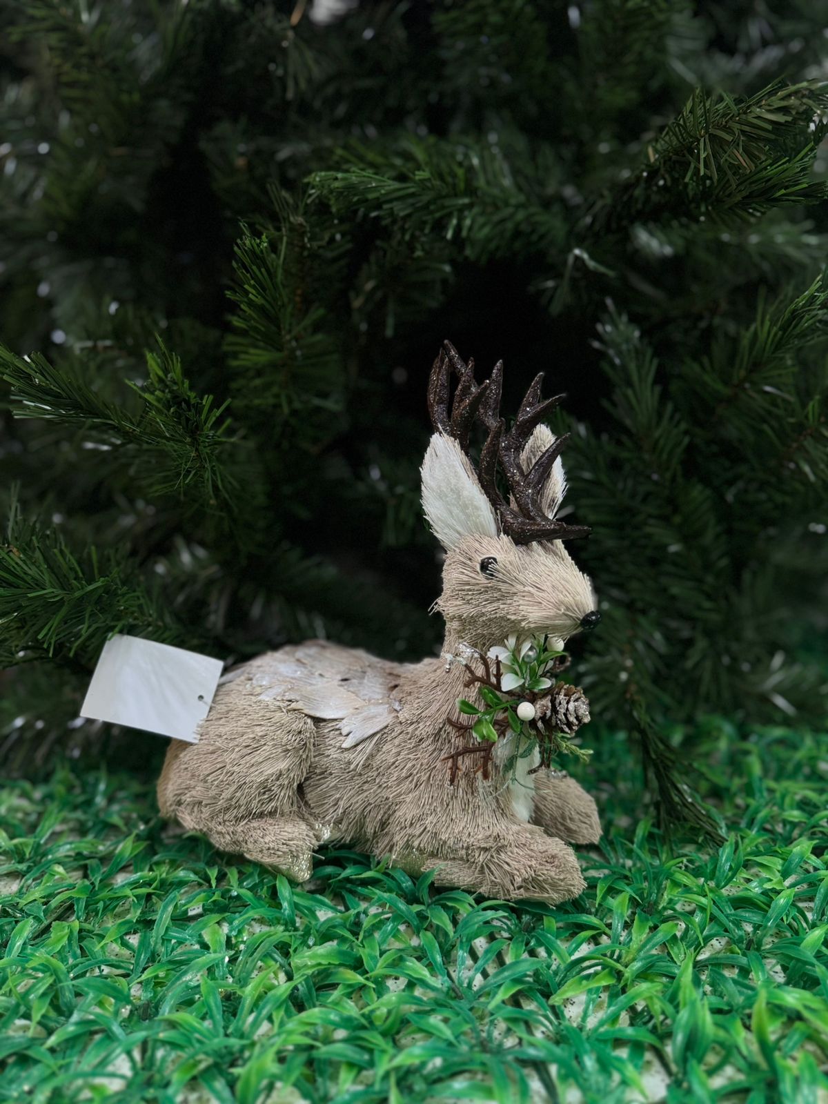 Decora tu hogar con encanto natural gracias a este adorable ciervo sentado con moño y piña, elaborado con detalles que evocan ternura y calidez. Sus delicados acabados, combinados con el toque rústico del ramito de piña y follaje que sostiene, lo convierten en una pieza ideal para realzar la magia navideña en tu sala, comedor o árbol. Con unas medidas de 23×14×26 cm, este elegante ciervo es perfecto para aportar un aire acogedor y festivo a cualquier rincón especial de tu decoración.