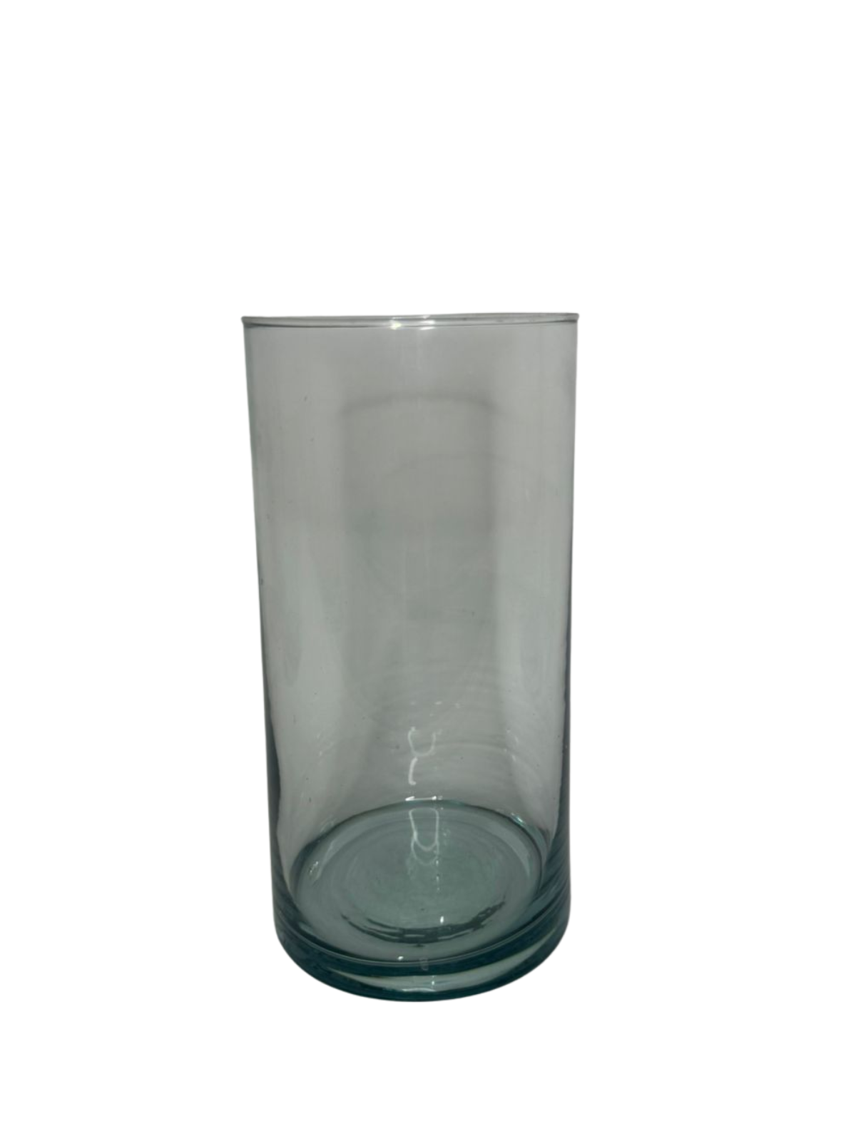 Jarrón cilíndrico en color trasparente, de estilo moderno y minimalista, perfecto para decoración o arreglos florales. Medidas: 10 x 20 cm.