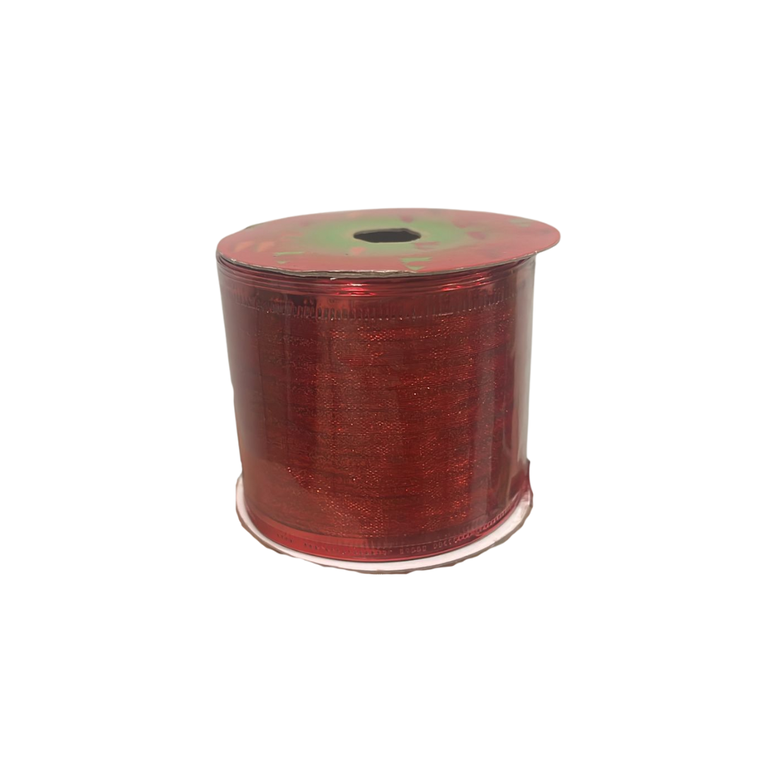 Cinta alambrada 2.5 x 10yds de velo con lineas escarchadas rojas
