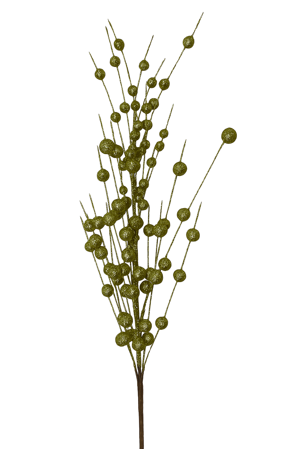 Espigas decorativas con berries dorados de 80 cm. Su acabado brillante y elegante aporta un toque de lujo y sofisticación a arreglos navideños, centros de mesa o árboles de Navidad. Perfectas para realzar tus decoraciones con un estilo festivo y glamuroso.