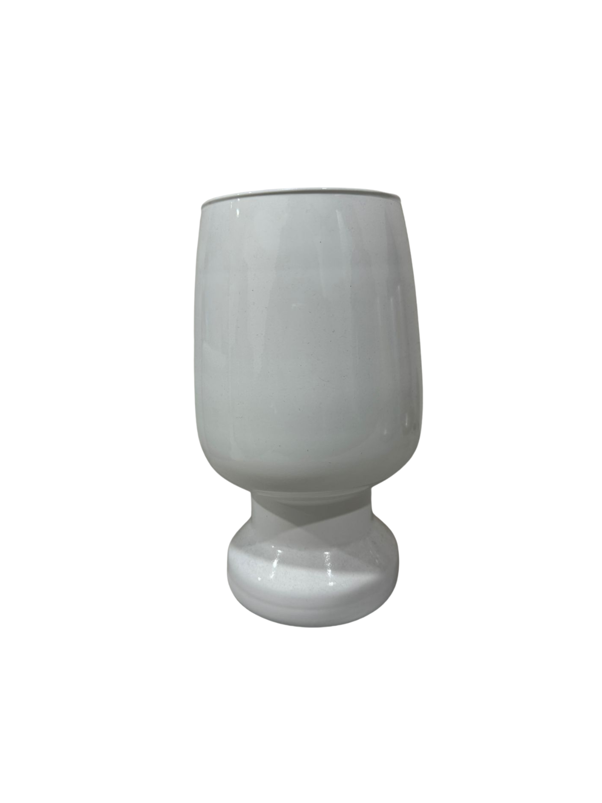 Florero de vidrio blanco modelo Arco, con diseño moderno de base ancha y cuerpo curvo que aporta elegancia y versatilidad para distintos estilos de decoración. Medidas: 26 cm de alto.