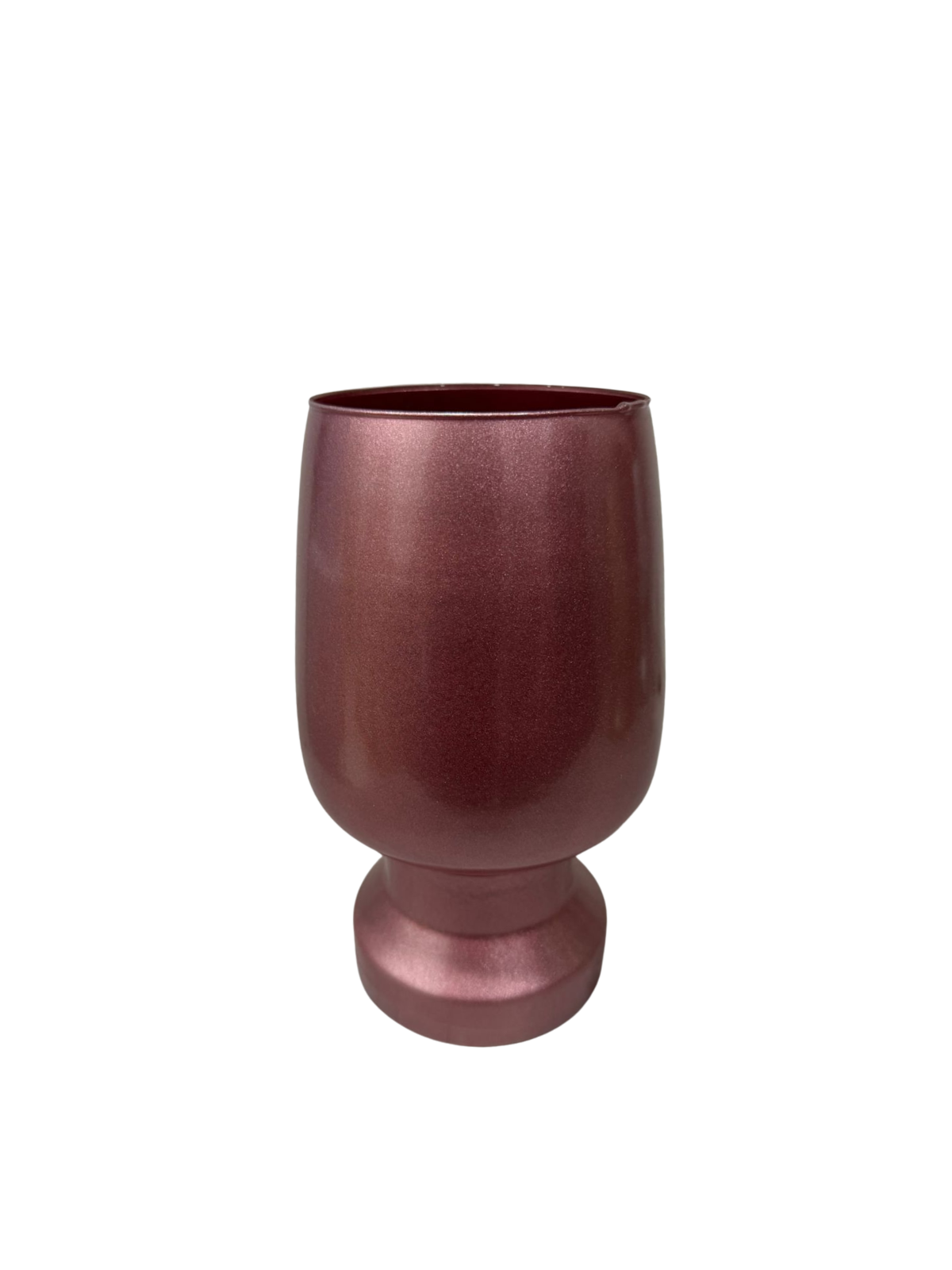 Florero de vidrio palo de rosa modelo Arco, con diseño moderno de base ancha y cuerpo curvo que aporta elegancia y versatilidad para distintos estilos de decoración. Medidas: 26 cm de alto.