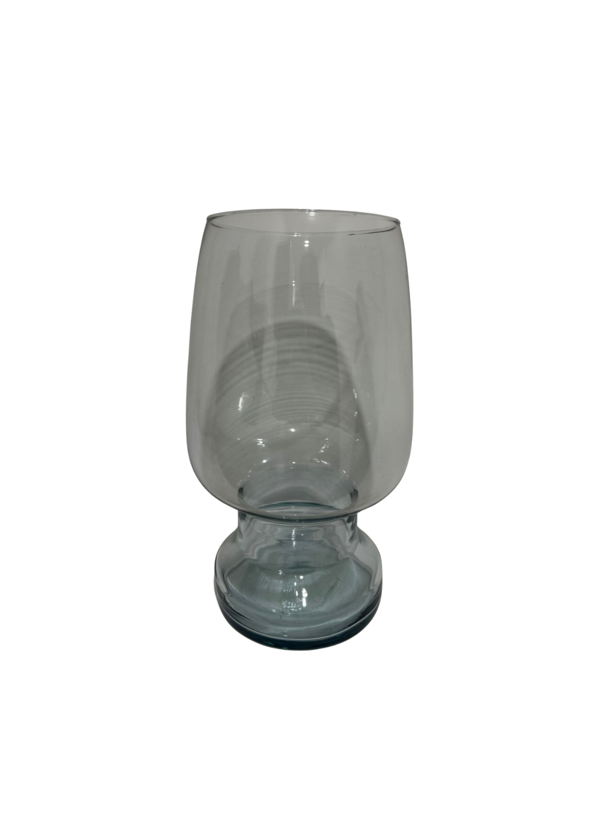 Florero de vidrio transparente modelo Arco, con diseño moderno de base ancha y cuerpo curvo que aporta elegancia y versatilidad para distintos estilos de decoración. Medidas: 26 cm de alto.