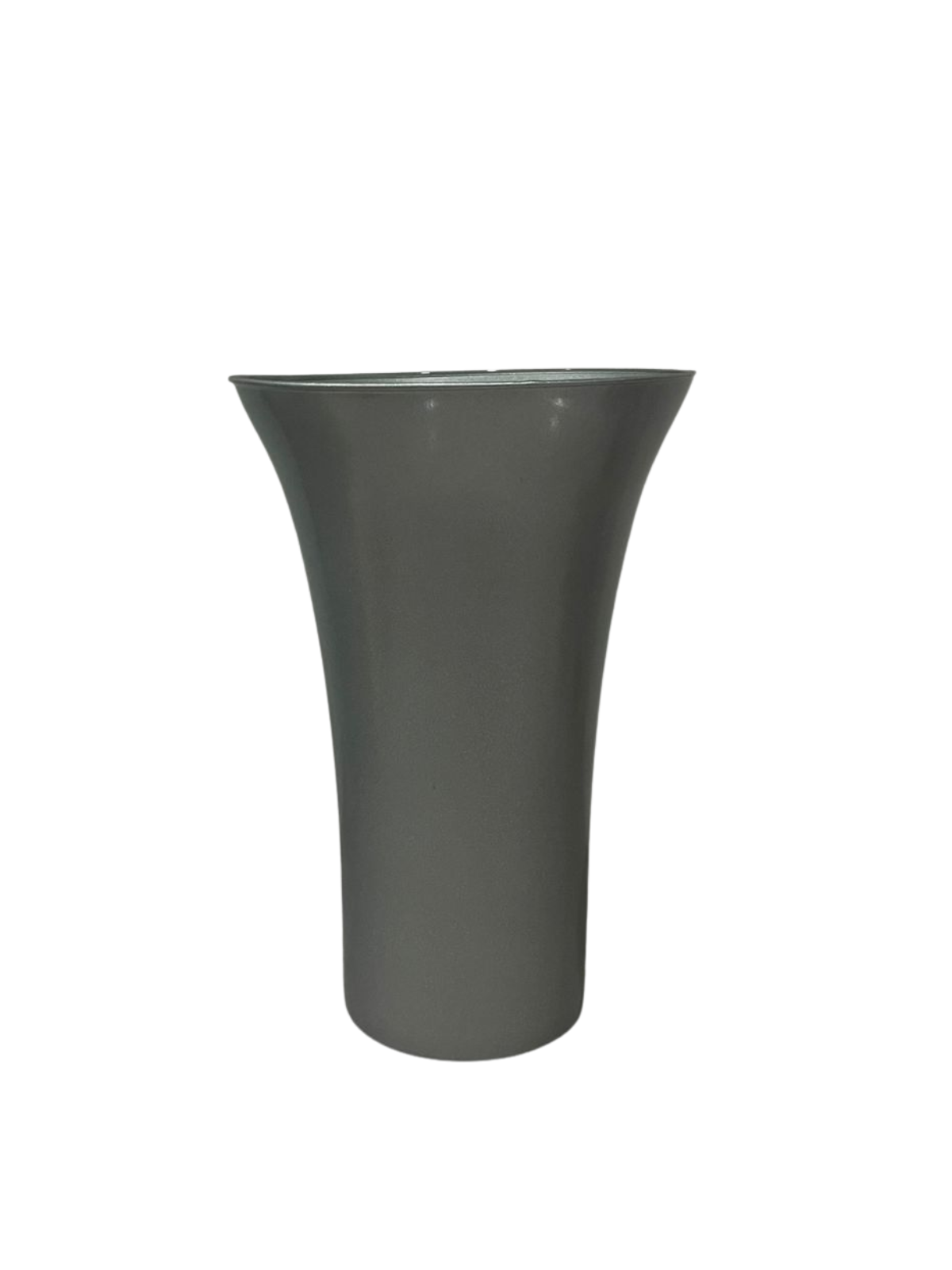 Florero en acabado plata mate, de diseño simple y contemporáneo que aporta un toque decorativo y elegante a cualquier espacio.
