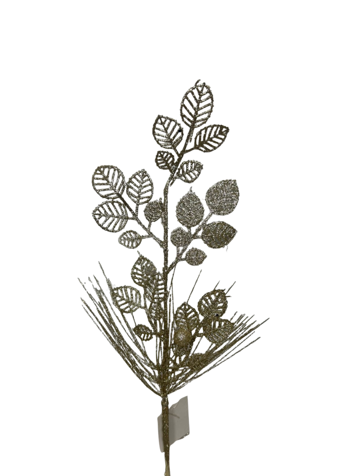 Follaje decorativo color champaña de 59 cm. Su tono suave y brillante aporta elegancia y calidez a cualquier arreglo floral o decoración navideña. Perfecto para combinar con dorados, plateados o tonos neutros y crear ambientes festivos y sofisticados.