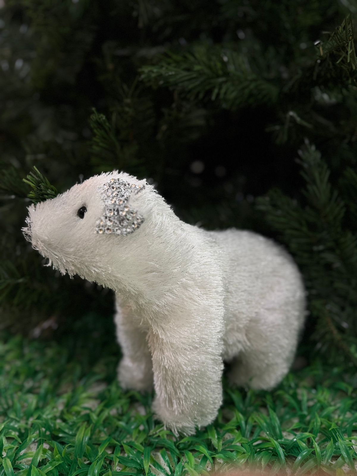 Agrega un toque de ternura invernal a tu decoración navideña con esta encantadora Mamá Osa Polar Sentada. Confeccionada con detalles delicados y acabados suaves, esta figura transmite calidez y dulzura en cada rincón donde se coloque.
