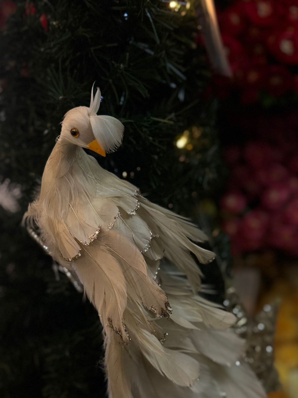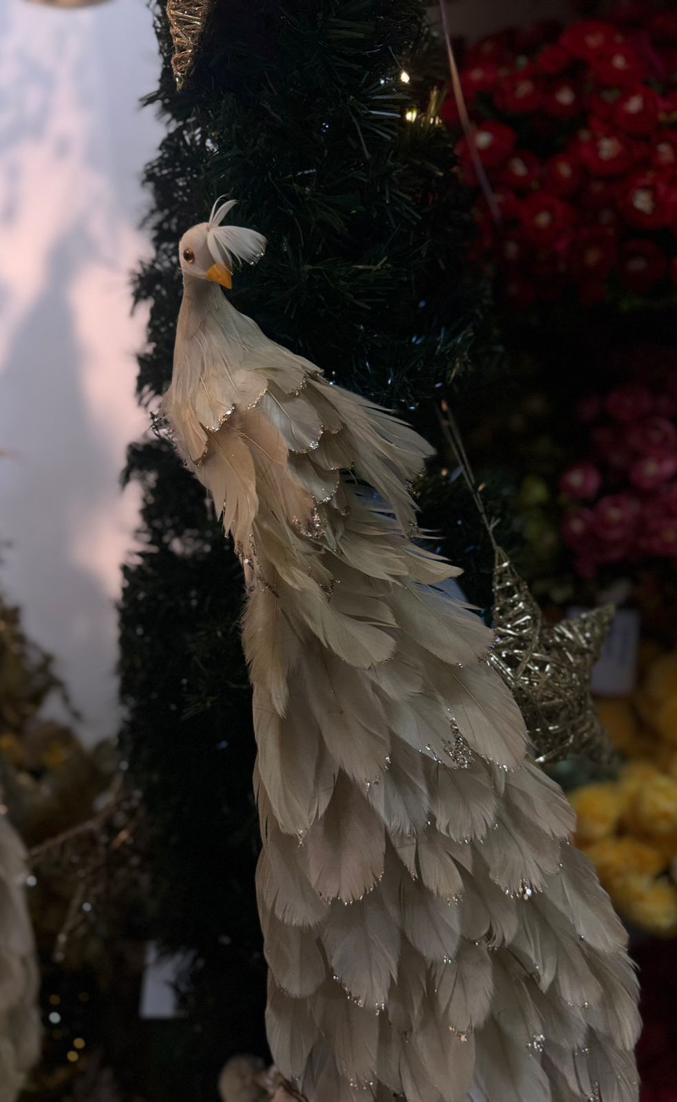 Embellece tu decoración con este elegante pavo real dorado de 60×18×20 cm, con un acabado delicado y detalles brillantes en sus plumas que le dan un toque sofisticado. Perfecto para adornar árboles de Navidad, arreglos florales o espacios especiales, aporta un aire de lujo y distinción a cualquier ambiente.