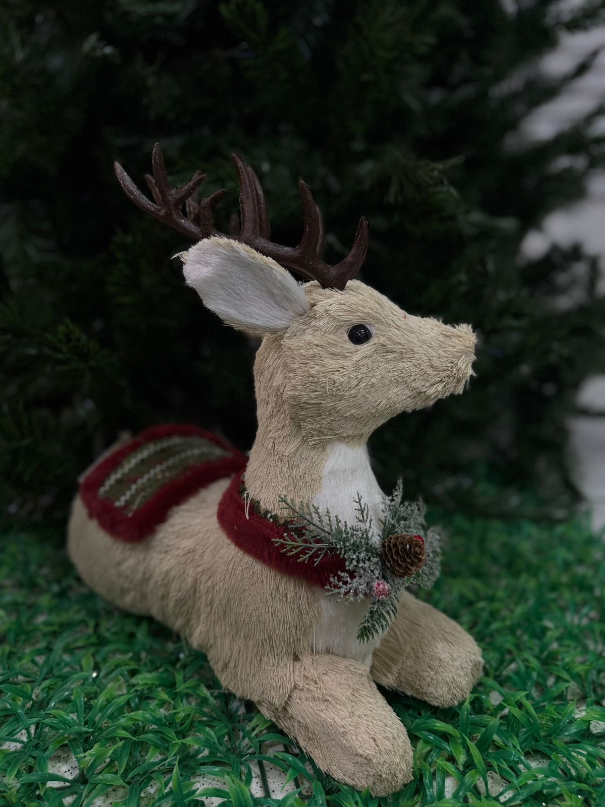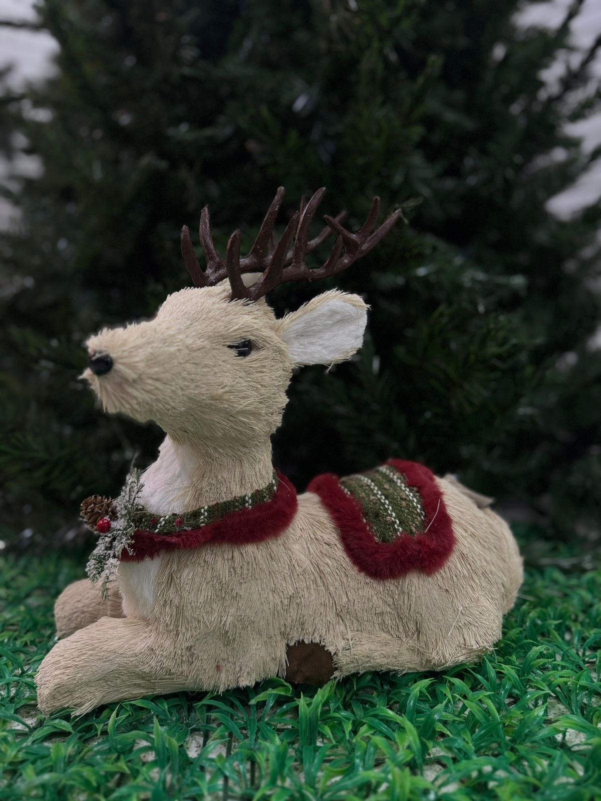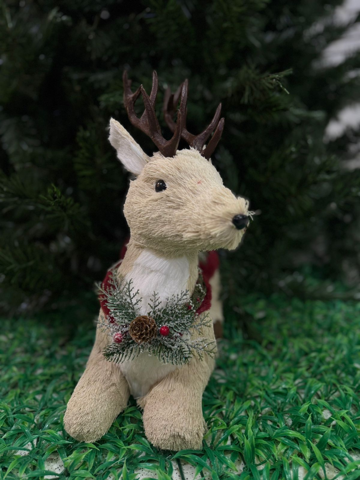 Este adorable reno sentado de 35 cm es el complemento perfecto para dar un aire cálido y elegante a tu decoración navideña. Con un delicado adorno festivo en el cuello y una manta decorativa en tonos tradicionales que evocan el espíritu de la temporada, aporta un toque acogedor y sofisticado a cualquier espacio. Ideal para colocarse junto al árbol, en entradas, o como parte de un centro decorativo. Más que un adorno, es un detalle que transmite la magia y la dulzura de la Navidad, llenando tu hogar de encanto y tradición.
