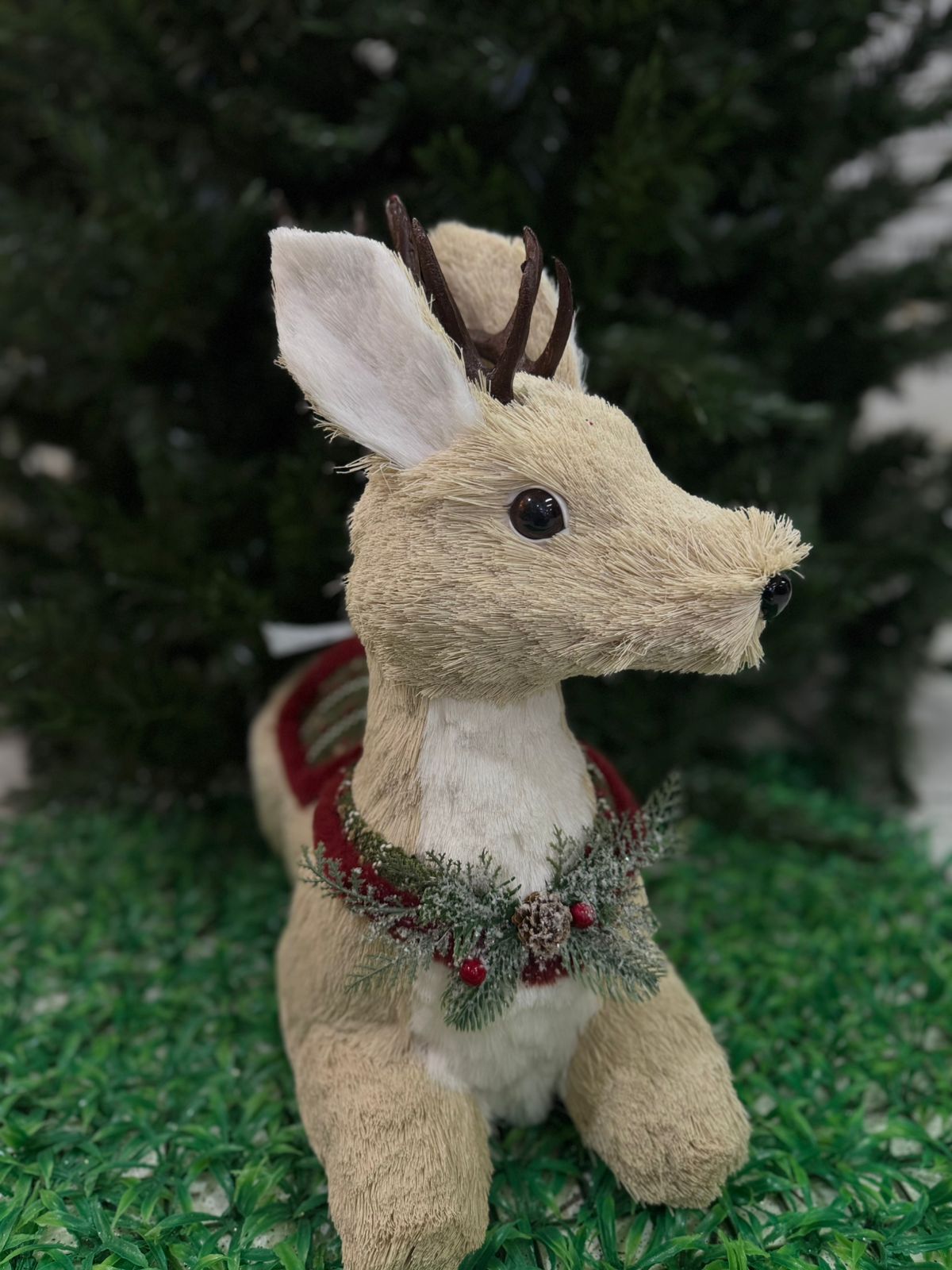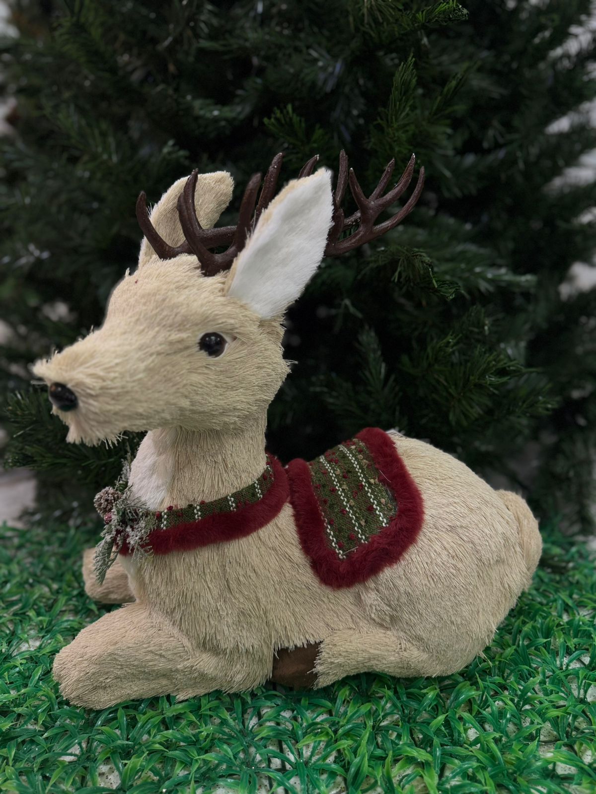 Este adorable reno sentado de 45 cm es el complemento perfecto para dar un aire cálido y elegante a tu decoración navideña. Con un delicado adorno festivo en el cuello y una manta decorativa en tonos tradicionales que evocan el espíritu de la temporada, aporta un toque acogedor y sofisticado a cualquier espacio. Ideal para colocarse junto al árbol, en entradas, o como parte de un centro decorativo. Más que un adorno, es un detalle que transmite la magia y la dulzura de la Navidad, llenando tu hogar de encanto y tradición.